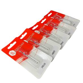 Dimensões aproximadas: comprimento total de 44,3 mm, ponta com 4,9 mm de altura, diâmetro máximo da ponta de 2,3 mm e haste padrão universal de 2,4 mm.