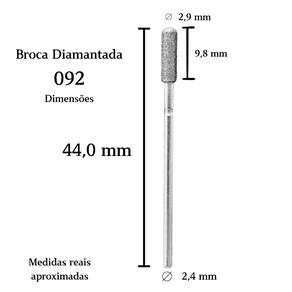 Dimensões aproximadas: comprimento total de 44,0 mm, ponta diamantada cilíndrica com 9,8 mm de altura por 2,9 mm de diâmetro e haste padrão universal de 2,4 mm.