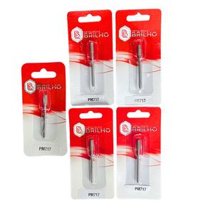 O kit contém 5 brocas diamantadas modelo PM 717 Brilho, com corpo cônico e ponta reta. São projetadas para nivelamento, polimento e redução da espessura da lâmina ungueal, oferecendo maior área de contato para desgaste eficiente e controlado.