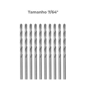 Informações Técnicas: - Diâmetro da Broca: 7/64” (aproximadamente 2,778 mm) - Comprimento Total: 59 mm - Material: Aço Rápido (HSS) - Norma: DIN 338 - Aplicação: Perfuração em metais. - Ponta: Geometria otimizada para corte preciso - Velocidade Recomendada: Dependerá do material perfurado, mas geralmente alta para aço e metal.