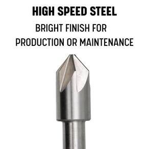 - Projetado para fornecer mais remoção de metal do que o escareador de flautas de 1,2,3 e 4 flautas