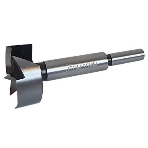 Broca Forstner para dobradiça em aço HSS, ideal para instalar dobradiças e outros encaixes em madeiras duras, aglomerados no segmento de móveis e carpintaria.