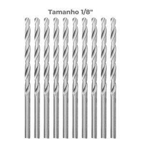 Especificações Técnicas: - Diâmetro da Broca: 1/8 3,17 mm - Comprimento Total: 65 mm - Material: Aço Rápido HSS - Norma: DIN 338 - Aplicação: Perfuração em metais. - Ponta: Geometria otimizada para corte preciso - Velocidade Recomendada: Dependerá do material perfurado, mas geralmente alta para aço e metal.