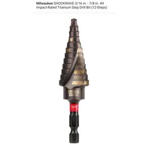 BIT STEP NO4 X 3/40.6 cm - 7/20.3 cm Nossas brocas de degrau SHOCKWAVE Impact Duty são projetadas para fornecer a solução de perfuração de furo de broca de impacto mais durável e rápida. Nossas brocas de degrau são feitas nos EUA com materiais globais e oferecem o melhor desempenho da classe em chaves de impacto com a versatilidade para serem usadas em furadeiras. A haste hexagonal de 1/10.2 cm tem um corpo SHOCKZONE otimizado que fornece a haste mais durável do setor, reduzindo as quebras precoces da haste. Um revestimento de nitreto de alumínio de titânio ajuda a proporcionar uma vida útil 5x mais longa, enquanto a ponta Rapid Strike da broca de passo e a flauta espiral dupla produzem furos 2x mais rápidos. Nossa broca de degrau de 1/8 a 1/5.1 cm possui 13 degraus com gravação a laser para uma parada clara na identificação do tamanho. - Orifícios mais duráveis e rápidos - Uma flauta espiral dupla combinada com a ponta Rapid Strike proporciona furos até 2 vezes mais rápidos do que brocas de impacto competitivas - Com uma zona de choque otimizada e um revestimento de nitreto de alumínio de titânio, essas brocas duram 5 vezes mais do que brocas de impacto competitivas - Estas brocas de degrau têm o melhor desempenho da classe em chaves de impacto e versatilidade para serem usadas em furadeiras - Revestimento de nitreto de alumínio de titânio A ponta Rapid Strike oferece partidas rápidas e precisas - Gravação a laser para facilitar a identificação do tamanho - Seis tamanhos diferentes, até 13 degraus