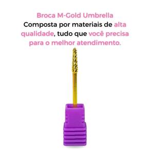 A broca de unhas M Gold Umbrella é um instrumento de alta qualidade para o uso em manicure e pedicure. Sua característica principal é o formato que lembra um guarda-chuva ou um cone com a ponta arredondada, o que a torna ideal para fazer o acabamento das unhas com segurança e precisão. Indicada para remover o excesso de gel, acrílico ou polygel, além de auxiliar no processo de nivelamento e suavização das unhas. Com seu design dourado, garante uma longa durabilidade. Facilita o trabalho sem danificar a superfície das unhas, oferecendo um acabamento suave e uniforme. Extremamente eficiente na remoção de resíduos, possibilitando um trabalho preciso e rápido, o que é ideal para quem busca resultados profissionais.