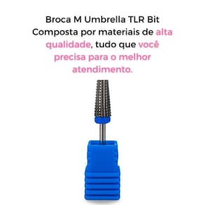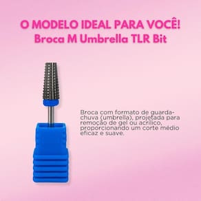 A Broca de Manicure M Umbrella TLR Bit é indispensável para o atendimento, entregando excelência para remover gel, acrílico ou outros produtos em camadas mais espessas, com seu corte médio, permite uma remoção eficaz sem comprometer o leito da unha. Possui um design especializados, permitindo que as manicures e nail designers realizem seu trabalho com mais eficiência e precisão.
