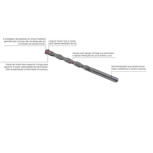 A Broca Ponta Metal Duro P/Concreto 4mmx75mm Cortag 62286 é a escolha ideal para profissionais da construção civil que desejam perfurar concreto, alvenaria e mármores com rapidez e durabilidade. Desenvolvida pela Cortag, essa broca de metal duro proporciona alta capacidade de perfuração, resistência e velocidade de avanço. A ponta da broca é soldada no corpo metálico, garantindo que não desgrude mesmo em condições de aquecimento. Além disso, a ponta de metal duro especial Cortag oferece maior resistência e durabilidade, permitindo perfurações precisas e eficientes. Com medidas de 4,0 mm x 75 mm, essa broca é perfeita para diversas aplicações na construção civil. O pacote conta com 10 peças, garantindo um ótimo custo-benefício para o . A broca possui canais com design Cortag, que permitem a rápida liberação do pó durante o uso, evitando acúmulo e facilitando o trabalho. Além disso, o aço temperado utilizado na fabricação proporciona maior resistência e evita a ruptura da broca. Com essa broca, você terá a confiança de estar utilizando um produto de alta qualidade, desenvolvido para atender às demandas mais exigentes da construção civil. Invista em uma broca que irá facilitar o seu trabalho e garantir resultados precisos. Garanta já a sua Broca Ponta Metal Duro P/Concreto 4mmx75mm Cortag 62286 e descubra toda a eficiência e durabilidade que ela pode oferecer. Não perca tempo e adquira agora mesmo! Marca: Não Informado Ean: 7897451422863