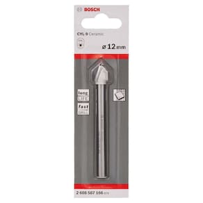 A broca para cerâmica CYL-9 Ceramic é a solução Bosch para perfurar pisos de dureza baixa e média. Possui aresta de corte em carbeto de tungstênio, afiada com diamante, e ponta em forma cônica para centralização exata. Seu design sem espiral que é especialmente projetado para perfurar pisos. Este produto deve ser utilizado sem a função impacto obrigatóriamente. Compatível com furadeiras sem impacto, com ou sem fios, que possuam sistema de haste cilíndrica.