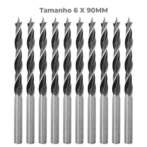 A broca possui um diâmetro de 6mm e comprimento total de 90mm, sendo ideal para perfurar materiais de madeira. Sua ponta tem uma geometria otimizada para corte preciso, garantindo furos limpos e sem rebarbas.