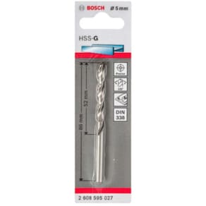 - Marca: Bosch; - Referência: 2608595027; - Apropriada para aço com e sem liga resistente à ruptura de até 900 N/mm, fundição de aço, fundição cinzenta, ferro sinterizado, ferro fundido maleável, metais não ferrosos, materiais sintéticos duros; - Afiada com grande precisão, permitindo um avanço de perfuração até 40% mais rápido e 50% menos pressão de avanço comparados com outras brocas HSS com polimento cônico.