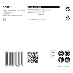 A broca para concreto Bosch SDS Max-8X oferece 50% mais durabilidade até nas aplicações mais duras. Sua ponta maciça em carbeto de tungstênio com 4 arestas de corte garantem desempenho e resistência excepcionais em concreto armado. A broca é extremamente resistente a tensões e ao calor graças à tecnologia de solda por fusão entre o corpo de aço e a ponta maciça de carbeto de tungstênio. Além disso, a ponta centradora com angulo de afiação em 90 proporciona inícios estáveis ao perfurar. Para obter resultados precisos, a broca para concreto Bosch SDS Max-8X possui uma marca de indicação de desgaste para controlar se o diâmetro do furo ainda está dentro da tolerância normativa. Para garantir uma perfuração de precisão, como em aplicações como ancoragem, a broca possui a marca de teste da Comissão da Associação de Brocas para Alvenaria PGM, que garante a conformidade com tolerâncias apertadas, perfuração exata e fixações firmes. É compatível com martelo com encaixe SDS Max de todas as marcas.- Dura até 3 vezes mais que a broca SDS max-4 da Bosch- Ponta de broca excepcionalmente durável com Carbide Technology da Bosch.- Ponta centradora com ângulo de 90 proporciona uma perfuração estável do início ao fim- Ponta maciça em metal duro com 4 arestas de corte garantem desempenho e resistência excepcionais em concreto armadoItens inclusos: 01 unidade - Broca Bosch EXPERT SDS Max-8X com ponta maciça em carbeto de tungstênio e 4 arestas de corte Diâmetro30 x 200 x 320 mmEspecificações técnicas:- Diâmetro: 30mm - Comprimento útil: 200mm - Comrpimento total: 320mm