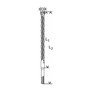 Dados técnicos Diâmetro D mm: 19 Comprimento de trabalho L1 mm: 150 Comprimento total L2 mm: 200 Broca, designação: SDS-plus-5 Material, nome abreviado: HM Brocas para martelos Encabadouro, forma: SDS-plus Broca, forma de quatro espirais Ponta de broca, forma: Ponta de centragem Gume, tipo: 2 gumes de corte