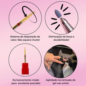 A broca ideal para profissionais que fazem alongamentos de unhas em todas as técnicas, com corte fino para unhas, F-Gold Small Cone é uma ferramenta delicada e precisa, com formato cônico e acabamento dourado, ideal para trabalhos detalhados como o acabamento próximo à cutícula, a limpeza de sulcos e o polimento suave da superfície da unha. Seu grão fino permite um desgaste controlado, garantindo segurança e suavidade no manuseio. Sendo ideal para limpeza delicada de sulcos e remoção suave de cutículas.