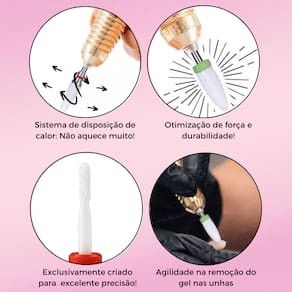 Características principais: - Cerâmica: oferece maior durabilidade, resistência ao calor e menor risco de aquecimento excessivo da área trabalhada; - Ideal para pequenos detalhes; - Indicada para todas as técnicas de alongamentos e acabamentos com brocas; - Acompanha caixinha para armazenamento; - Indispensável para profissionais; - Entrega acabamento impecável e delicado!