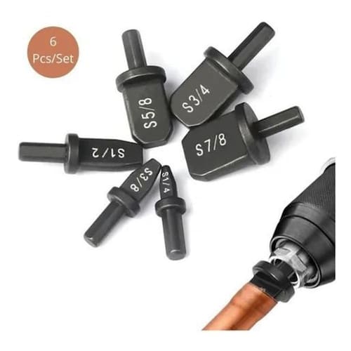 Brocas alargador expansor cano tubo de cobre alumínio 6 pcs o kit alargador / expansor é ideal para fazer alargar tubo de cobre rígido e flexível e também tubos de alumínio para fazer conexões de tubulações de ar condicionado e muito mais. Robusto, fácil de usar e longa vida útil. Possui 6 tamanhos para te ajudar nos mais diversos tipos de trabalho, dando padronização ao serviço. Pode ser utilizado em furadeira manual. Ferramenta ideal para instaladores de ar condicionado. Detalhes: material: aço quantidade: 6 peças
