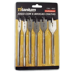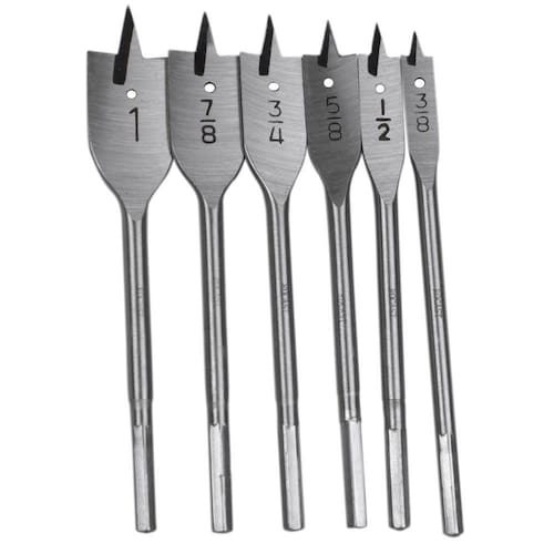 Jogo de brocas chata utilizada em trabalhos de perfuração em madeira. Corpo em aço especial Têmpera total no corpo Acabamento polido e envernizado Composto por 6 peças, sendo: :: 3/8 :: 1/2 :: 5/8 :: 3/4 :: 7/8 :: 1 Ean: 7898610835555