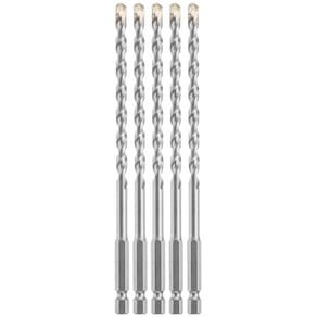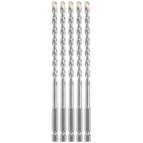 Bosch 5 peças Brocas de alvenaria com haste hexagonal de 1/4 pol. x 15 cm LBHX0045 - Broca de alvenaria com ponta de carboneto com design de haste hexagonal atualizada – projetada para proporcionar vida útil longa e remoção rápida do material - Ponta assimétrica de carboneto moído em diamante – permite perfuração rápida e vida útil mais longa da broca - Haste hexagonal atualizada – permite o uso em drivers de impacto e furadeira/chaves de martelo para maior versatilidade - Carboneto exclusivo da Bosch – proporciona excelente durabilidade sob cargas pesadas - Flautas em U fresadas com espiral de corte profundo – proporciona rápida remoção de material