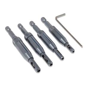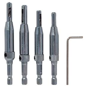 - As brocas de 4 peças de dobradiças incluem # 6 (3/32), # 8 (7/64), # 10 (1/8), # 12 (5/32) bits e bit hexagonal.
