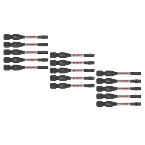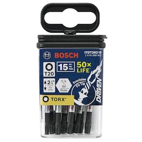 BOSCH ITDT20215 Pacote com 15 brocas de 5 cm Torx #20 resistentes a impactos - Design acionado: oferece vida útil de 50 vezes em relação às brocas padrão, com uma zona de torção construída para durar, superfície endurecida e ponta de precisão - Dicas de broca de precisão: proporciona um melhor ajuste e menos cam-out - Zona de torção: construído para durar, com um novo design cônico, absorve os picos de torque dos acionadores de impacto para evitar quebras - Fabricação de brocas tratadas termicamente: oferece brocas mais duráveis - Interface com classificação de impacto: feito para caber 1/4 pol. chaves de impacto hexagonais