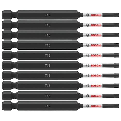 BOSCH ITT1535B Pacote com 10 brocas Torx #15 de 7,5 cm - 10 x vida útil sobre brocas de impacto padrão - A zona de torção Xtended ajuda a absorver alto torque de novos drivers de impacto - Pontas projetadas com precisão para um ajuste mais apertado e menos saída CAM - Fabricação com tratamento térmico para uma broca mais forte - Manga de alta visibilidade com marcações gravadas a laser para conveniência do usuário