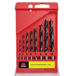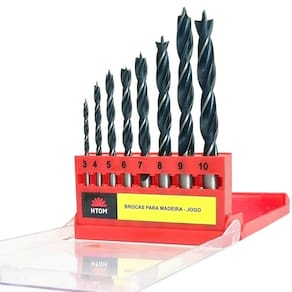 Jogo de Brocas para Madeira 3 Pontas 8 Peças 3 a 10mm HTOM Jogo de Brocas para Madeira com 3 Pontas, kit com 8 Peças 4 a 10mm HTOM. Tamanhos: 3mm, 4mm, 5mm, 6mm, 7mm, 8mm 9mm e 10mm - Marca: HTOM - Referência: HTOM-37259 - Fabricadas em Aço Cromo - Tamanhos: 3mm, 4mm, 5mm, 6mm, 7mm, 8mm 9mm e 10mm - Kit com os tamanhos de brocas mais utilizados - Produto com qualidade - Encaixe cilíndrico - As brocas de três pontas são indicadas somente para furar madeira - Maior resistência ao calor gerado pelo atrito com a madeira e suas resinas - A ponta central serve como um guia do furo, não deixando o ponto inicial escapar durante a perfuração. - Indicada para uso com furadeiras e parafusadeiras - Acompanha estojo plástico - : 90 dias Ean: 7898452050932
