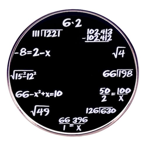 Material: Liga Tamanho: 3 x 3 cm Peso: 7,8 g Quantidade: você obterá todas as peças em quantidade igual à primeira imagem principal. Mostre o tema matemático — Apresenta várias fórmulas e equações em branco em um design circular preto, criando um acessório ousado para amantes da matemática. Material de liga durável — Feito de liga de alta qualidade com revestimento de esmalte, garantindo brilho duradouro e resistência ao desgaste ou desbotamento. Acessório versátil — funciona como alfinetes de blusa, broche ou crachá de lapela para jaquetas, camisas, bolsas e chapéus, adicionando um toque geek chic. Compacto e leve — Tamanho 3x3 cm e peso 7,8 g, projetado para ser confortável para uso diário, mantendo os tecidos seguros. Perfeito para professores e estudantes — Um emblema estiloso para professores de matemática, estudantes ou entusiastas que gostam de acessórios inspirados na ciência.