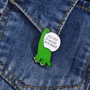 Material: liga. Tamanho: 2,7 x 4,9 cm Peso: 5,6 g Quantidade: você receberá todas as peças em quantidade igual à do primeiro filme principal. Design humorístico de desenho animado — Apresenta um dinossauro verde com um balão de fala “Todos os meus amigos estão mortos”, tornando este broche esmaltado engraçado e atraente. Material de liga durável — Feito de liga premium com revestimento de esmalte, oferecendo superfície lisa, cores vivas e durabilidade duradoura. Compacto e leve — mede 2,7 x 4,9 cm e pesa 5,6 g, é confortável de usar diariamente e fácil de colocar em roupas, bolsas ou chapéus. Acessório versátil — funciona como alfinetes de blusa, broche de lapela ou crachá decorativo para jaquetas, mochilas, fantasias de cosplay ou roupas casuais de streetwear. Colecionável e exclusivo — Com sua citação inteligente e design criativo de dinossauro, este broche é um acessório colecionável de destaque para amantes de alfinetes esmaltados.