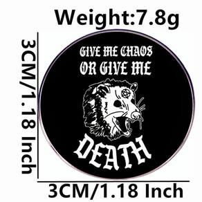 Material: liga. Tamanho: 3 x 3 cm Peso: 7,8 g Quantidade: você receberá todas as peças em quantidade igual à primeira foto principal. ShowGothic Design — Apresenta uma feroz estampa de gambá com a frase “Give Me Chaos or Give Me Death”, criando um impressionante acessório com atitude inspirado no punk. Material de liga — Feito de liga resistente com acabamento esmaltado suave, garantindo cores vivas, obras de arte detalhadas e resistência a arranhões. E leve — Medindo 3x3 cm e pesando 7,8 g, este broche é portátil e confortável para uso diário. Acessório — Funciona como alfinete de blusa, alfinete de lapela ou crachá, adequado para jaquetas, camisas, mochilas, chapéus ou cachecóis. Estilo punk — Perfeito para homens e mulheres, este broche elegante é ideal para uso casual, shows, festas ou como uma peça de streetwear atraente.