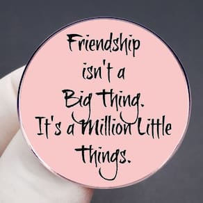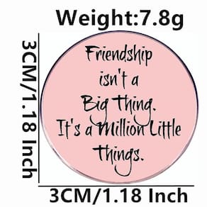 Material: liga Tamanho: 3 x 3 cm Peso: 7,8 g Quantidade: você receberá todas as peças em quantidade igual à primeira foto principal. Mostre um design reconfortante: apresenta um broche redondo de esmalte rosa com a frase comovente “A amizade não é grande coisa, é um milhão de pequenas coisas”, destacando o valor da amizade verdadeira. Construção em liga durável: feito de liga de alta qualidade com acabamento esmaltado, este broche é leve, duradouro e resistente ao desbotamento. Compacto e leve: medindo 3x3 cm e pesando 7,8 g, este broche é confortável de usar diariamente e fácil de colocar em roupas ou bolsas. Acessório versátil: perfeito como alfinete de blusa, alfinete de lapela ou crachá para jaquetas, mochilas, chapéus ou roupas casuais, adequado para uso diário ou ocasiões significativas. Estilo unissex: adequado para homens e mulheres, este broche de esmalte é um acessório atencioso para estudantes, criadores de tendências ou qualquer pessoa que valorize a amizade.
