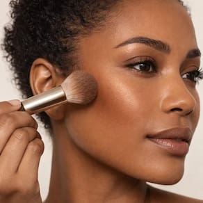 Para aplicar o Bronzer Baked Ruby Rose Blow Feels Like Sun, utilize um pincel apropriado para bronzer, de preferência com cerdas macias e anguladas. Aplique o produto nas áreas do rosto onde o sol naturalmente incidiria, como as maçãs do rosto, têmporas, testa e queixo. Esfume suavemente em movimentos circulares para garantir um acabamento uniforme e natural, evitando linhas marcadas. Para um efeito mais intenso, construa camadas gradualmente, aplicando o produto em pequenas quantidades até atingir a intensidade desejada. Dica: utilize um pincel menor para contornar o nariz e definir os traços do rosto.
