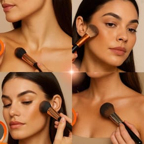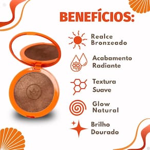 Aplicar com um pincel nas áreas do rosto e corpo que deseja bronzear e iluminar, como maçãs do rosto, testa, queixo e colo.