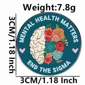 Material: Liga Tamanho: 3 x 3 cm Peso: 7,8 g Quantidade: você receberá todas as peças em quantidade igual à primeira foto principal. ShowAwareness Design — Apresenta o poderoso slogan “A saúde mental importa — acabe com o estigma” com uma ilustração cerebral e floral, espalhando uma mensagem positiva e solidária. Simbolismo — Combina o motivo do cérebro com flores coloridas, representando equilíbrio, cura e crescimento, tornando-o um acessório motivacional atencioso. Construído em liga leve — Feito de material de liga resistente com acabamento esmaltado, leve com 7,8 g, resistente a arranhões e duradouro para uso diário. E elegante — Com um design redondo de 3 cm, este broche, alfinete de blusa, alfinete de lapela ou crachá é fácil de combinar com camisas, jaquetas, bolsas ou chapéus. Acessório positivo — Adequado para homens e mulheres que valorizam a consciência da saúde mental e desejam usar broches esmaltados que ajudem.