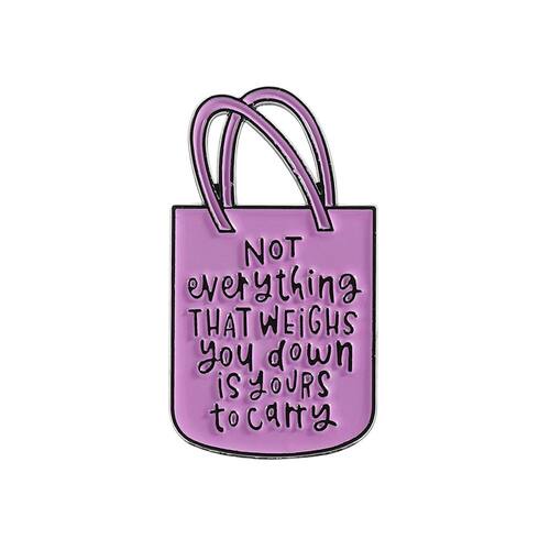 Material: liga Tamanho: 1,9 x 3,4 cm Peso: 4,4 g Quantidade: você receberá toda a quantidade de peças da mesma imagem principal. Design do ShowQuote — Apresenta um formato de sacola rosa com a mensagem empoderadora “Nem tudo que pesa é seu para carregar”, adicionando motivação e positividade à sua roupa. Construção em liga — Feita de liga de alta qualidade com revestimento de esmalte liso, garantindo cores brilhantes, resistência ao desbotamento e desgaste duradouro. E leve — Medindo 1,9 x 3,4 cm e pesando apenas 4,4 g, este broche é portátil, fácil de usar e confortável para uso diário. Acessório — Funciona como alfinete de blusa, alfinete de lapela ou crachá, perfeito para estilizar com jaquetas, camisas, chapéus, mochilas ou outros acessórios de vestuário. Estilo — Projetado para homens e mulheres, este broche significativo é ideal para uso escolar, profissional, casual ou como peça de moda motivacional para mostrar personalidade.