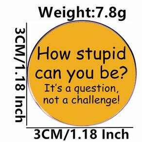 Material: Liga Tamanho: 3 x 3 cm Peso: 7,8 g Quantidade: você obterá todas as peças em quantidade igual à primeira foto principal Mostrar design humorístico: apresenta um fundo amarelo ousado com texto em preto que diz “Quão estúpido você pode ser? É uma pergunta, não um desafio!” , adicionando sarcasmo divertido à sua roupa. Material durável: feito de liga de alta qualidade, este broche é resistente, leve e projetado para uso duradouro. Tamanho portátil: mede 3x3 cm e pesa apenas 7,8 g, o que o torna um acessório conveniente para uso diário. Acessório versátil: perfeito como alfinetes de blusa, broche ou crachá de lapela para jaquetas, mochilas, chapéus ou roupas casuais. Estilo expressivo: um emblema ousado e divertido que destaca a individualidade e o humor, adequado para festas, encontros casuais ou uso diário.