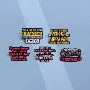 Material: liga Tamanho: 3 x 1,9 cm Peso: 31 g Quantidade: você receberá todas as peças em quantidade igual à primeira foto principal Mostrar citações inspiradoras: inclui frases divertidas e peculiares como “Não tenho certeza do que está acontecendo, mas estou aqui para ver o drama” e “Quando a vida lhe dá limões, esprema-os nos olhos das pessoas”. Material: Feito de liga durável, garantindo desgaste duradouro e cores vibrantes. Design divertido e versátil: esses pinos apresentam letras ousadas com um design divertido, adicionando personalidade a jaquetas, bolsas ou qualquer roupa. Compacto e leve: cada pino mede 3x1,9 cm e pesa apenas 31g, perfeito para fácil fixação em roupas ou acessórios. Ótimo para qualquer ocasião: uma maneira divertida e única de se expressar. Adequado para amantes de moda casuais e peculiares e colecionadores de acessórios divertidos.