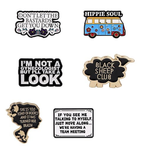 Material: liga Tamanho: 3 x 1,7 cm Peso: 26 g Quantidade: você receberá todas as peças em quantidade igual à primeira foto principal ShowCreative Quote Collection Este conjunto de broches apresenta designs como “Don't Let the Bastards Get You Down”, “Black Sheep Club” e uma van retrô Hippie Soul para uma expressão de estilo única. Material de liga durável Cada alfinete de lapela é feito de liga de alta qualidade com superfície esmaltada, garantindo que esses alfinetes de blusa sejam duradouros, leves e resistentes à ferrugem ou ao desbotamento. Compactos e leves. Medindo aproximadamente 3x1,7 cm e pesando 26 g, esses acessórios Badge são portáteis, fáceis de colocar e confortáveis de usar em qualquer roupa ou acessório. Estilo versátil. Perfeitos para decorar mochilas, jaquetas, camisas ou chapéus, esses broches são excelentes acessórios de moda para uso casual, estilo de rua, festas e festivais. Expressam personalidade. Engraçados, sarcásticos e inspiradores, esses alfinetes de blusa permitem que os usuários mostrem individualidade e humor enquanto atualizam sua moda com detalhes exclusivos.