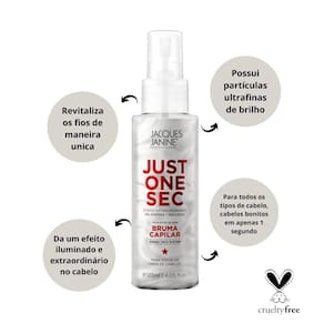 A Bruma Capilar Just One Second, desenvolvida com o inovador Amino Tech System, um complexo de aminoácidos exclusivamente criado e testado para revitalizar os fios de maneira única, é o finalizador perfeito, pois com suas partículas ultrafinas de brilho proporcionam um efeito iluminador extraordinário no cabelo.