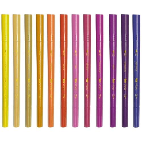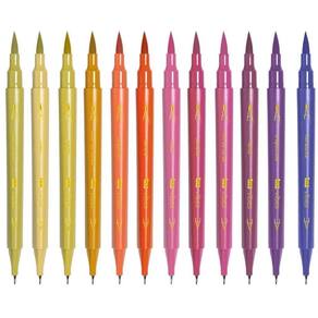 Brush pen 12 cores ponta dupla hidrocor tris vibe entardecer Brush pen tris vibes entardecer ponta pincel e ponta fine 0.4mm 12 cores