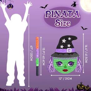 - FÁCIL DE PREENCHER — A linda piñata de bruxa mede 16,3” x 12,2” x 3,1”. Basta cortar um pequeno orifício na parte superior. Você pode facilmente encher presentes, doces, confetes e piñatas e pendurá-los onde quiser.