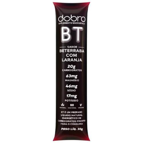 BT Gel Laranja com Beterraba Energia Dobro 30g possui: 20g de carboidrato, 63mg de magnésio, 46mg de sódio, 17mg de potássio, 1/3 de beterraba. Quando consumir BT GEL 5 minutos antes de uma atividade, a cada 45 minutos de atividade de longa duração ou pós treino para recuperação.
