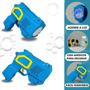 Leve a diversão a outro nível com o Bubble Gun, o lançador automático de bolhas de sabão que encanta crianças e adultos! Com design moderno e colorido, ele cria centenas de bolhas em segundos, iluminadas por uma luz azul que dá um efeito ainda mais mágico. Seguro e fácil de usar, é perfeito para brincadeiras ao ar livre, festas, eventos e momentos de pura alegria. Para utilizar, primeiro acople o refil de sabão na parte inferior do lançador e use normalmente até o sabão ser absorvido internamente. Em seguida, basta substituir o refil por um copo de água limpa, que se mistura ao sabão já existente no reservatório interno, garantindo a continuidade da brincadeira. Alimentado por 4 pilhas AA (não inclusas), o Bubble Gun dispara automaticamente bolhas ao pressionar o gatilho, ativando também a iluminação LED azul. Acompanha dois adesivos coloridos para personalizar o brinquedo do seu jeito. Indicado para crianças acima de 3 anos de idade. Especificações: - Funcionamento: Automático, a pilhas; - Alimentação: 4 pilhas AA (não inclusas); - Iluminação: LED azul que ilumina as bolhas; - Material: Plástico resistente com motor interno; - Recomendação: Para crianças acima de 3 anos; - Personalização: Acompanha adesivos decorativos. Itens inclusos: - 1x Lançador automático de bolhas Bubble Gun; - 1x Refil de sabão para bolhas; - 2x Adesivos coloridos para personalização. Selo de segurança: INMETRO – Registro 002 416/2023 Marca: Aquilae