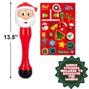- FESTIVIDADES ANIMADAS: Comemore as festas de fim de ano com bolhas direto do Papai Noel! Estas varinhas de bolhas infantis com tema natalino vêm com 2 garrafas (3,4 onças) de solução de bolhas e baterias para alimentar a diversão.