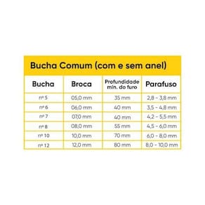 Com bitola de 6mm, esta bucha é compatível com parafusos de rosca madeira ou auto atarraxante, tornando-a versátil e pronta para diversas aplicações em sua casa ou escritório.