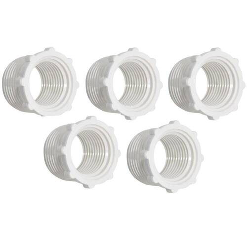 Bucha de Redução de 3/4 Para 1/2 Utilimix Kit 05 Un Bucha de Redução 3/4 para 1/2 - Kit com 05 Unidades Bucha de Redução com Rosca para Conexões de 3/4 com Redução para 1/2, permite a instalação de torneiras, bóias, engates, etc., com praticidade e segurança. Fácil instalação, maior praticidade e durabilidade. ATENÇÃO Evite deixá-la exposta ao sol, evitando assim a redução da sua vida útil. RECOMENDAÇÃO Utilize fita veda rosca para envolver a rosca no momento da intalação na rede de água para perfeita estanqueidade. GARANTIA 30 dias para defeitos de fabricação. ESPECIFICAÇÕES TÉCNICAS Cor: branca Largura: 3cm Altura: 3cm Profundidade: 2cm Material: pvc ITENS INCLUSOS 05 Reduções de 3/4 para 1/2 Marca: Utilimix