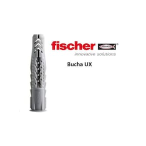 Funcionamento A UX com aba é adequada para instalação pré-posicionada; o UX sem aba é adequado para instalação de encaixe. Rodar o parafuso faz com que a UX se expanda no material base sólido e fique amarrada na cavidade. O comprimento necessário do parafuso é calculado através do comprimento da bucha + espessura da fixação + 1 x diâmetro de parafuso. Adequado para parafusos de madeira e de aglomerado, bem como para parafusos de haste. No caso de materiais de construção de painel, a parte sem rosca do parafuso não deve ser mais longa do que a fixação e deve ser utilizada a UX com aba. A distância da borda tem de ser pelo menos do comprimento de uma bucha.