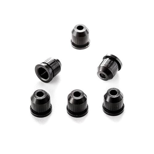Buchas Passa Corda (Through-Body) para instrumentos que possuam fixação das cordas na parte de trás do corpo, recomendado o uso com ponte modelo JPN/JSB, em acabamento preto, 6 unidades, Spirit Guitar Parts - JTE-BK.