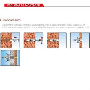 Informações técnicas: Bucha Perfix 10mm Comprimento da bucha: 60mm Profundidade mínima para furo: 70mm Diâmetro recomendado do parafuso: 5,0 - 6,3 mm Produzido em Polietileno de alta densidade Apresenta aletas e braços que fazem a bucha não girar dentro do furo.