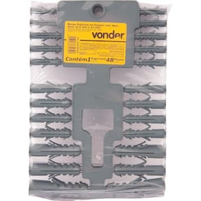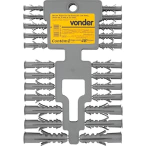 1 Jogo composto por 48 buchas: 8 buchas plásticas 5 mm, 12 buchas plásticas 6 mm, 16 buchas plásticas 8 mm, 8 buchas plásticas 10 mm, 4 buchas plásticas 12 mm.