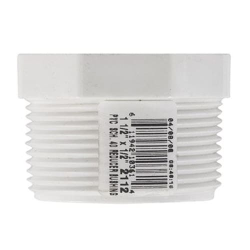 Bucha redutora de tubo Charlotte Mpt X Fpt 1-1/2 “X 1/2” White Schedule 40 Pvc