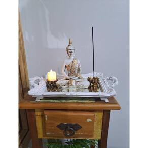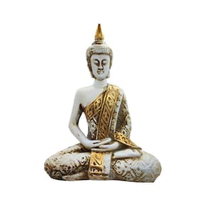 A figura personifica a jornada de introspecção e crescimento espiritual. Sua postura meditativa, olhos semicerrados e sorriso suave capturam a essência da busca pela iluminação. Cada detalhe desta peça é uma homenagem à filosofia budista, transmitindo uma sensação de tranquilidade e centramento.